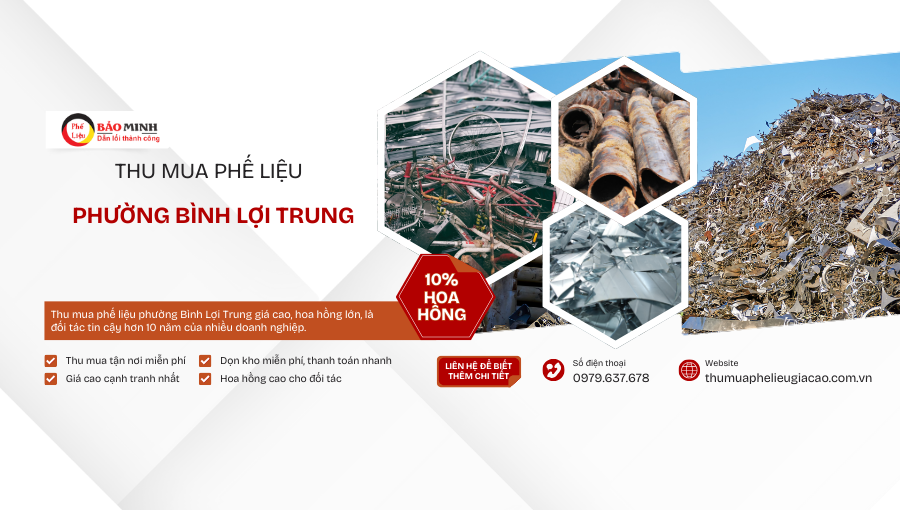 Công ty thu mua phế liệu Phường Bình Lợi Trung, TP.HCM Bảo Minh hơn 10 năm kinh nghiệm phục vụ khách hàng tận nơi. Là đơn vị uy tín được hàng ngàn khách hàng tin tưởng, phế liệu Bảo Minh cam kết mang đến mức giá cạnh tranh, hỗ trợ vận chuyển miễn phí, thanh toán tức thì bằng tiền mặt hoặc chuyển khoản, cùng dịch vụ dọn dẹp kho bãi sạch sẽ, an toàn và thân thiện với môi trường. Được lãnh đạo bởi một đội ngũ chuyên gia dày dặn kinh nghiệm, Phế Liệu Bảo Minh đảm bảo quy trình minh bạch, tuân thủ nghiêm ngặt các quy định pháp luật về tái chế và bảo vệ môi trường, sẽ giúp khách hàng tối ưu hóa lợi nhuận từ phế liệu.